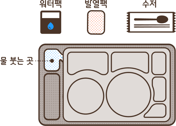 도시락통, 워터팩, 발열팩, 수저