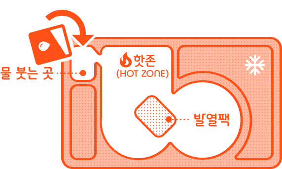 준비된 워터팩을 뜯어서 왼쪽 상단 공간에 물을 부어주세요.
